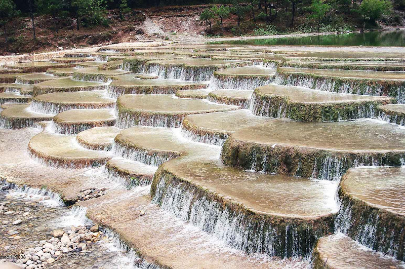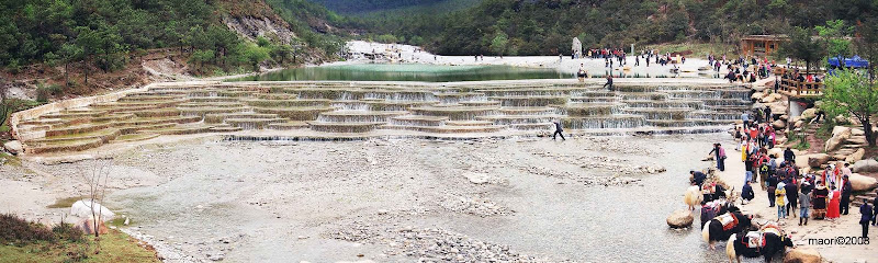 The road between the main visitor center and Yunshanping cable car station also passes by the Baishui River (White Water River), which got the name from its unpolluted water, and the white riverbed and terraced terrain which are made up of marble and limestone. The series of terraced steps are unique but I am not too sure whether they are man-made or naturally form.