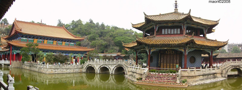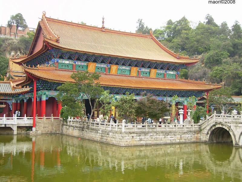 With a history of more than 1,200 years, Yuantong Temple is one of the oldest and grandest Buddhist temples in Kunming. Unlike all other Buddhist temples, which are built on the higher place of the mountain, with many steps leading up to the Hall of Sakyamuni, one of the most important buildings in a Buddhist temple, Yuantong Temple is built at a lower place. The entrance to the temple is from above and then along a gently sloping garden path to reach the Hall of Sakyamuni, which is at the lowest point of all the temple buildings. Gigantic cypress trees and an array of flowers line the garden path to the temple.